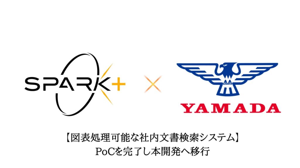 今般、Spark+と山田製作所が開発した図表処理が可能なRAG技術を活用した社内文書検索チャットボットについてのPoCを終了し、本システムの社内導入を行うこととなりました。アカデミックのバックグラウンドを持つ弊社のAI技術と、山田製作所様の持つ確かな知見・データの相乗作用により、社内業務の効率化をさらに進めてまいります。